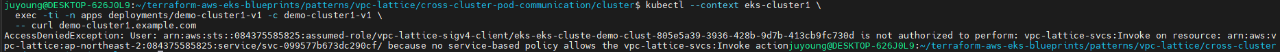 AccessDeniedException: User: arn:aws:sts::12345678910:assumed-role/vpc-lattice-sigv4-client/eks-... is not authorized to perform: vpc-lattice-svcs:Invoke on resource: ...