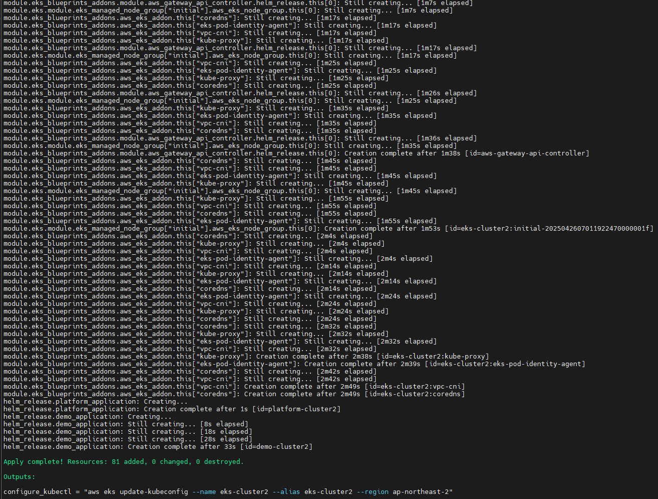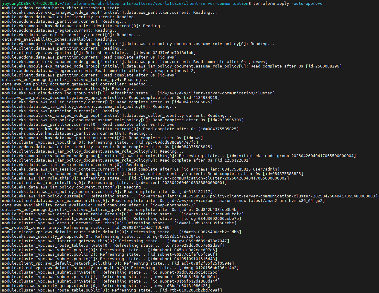 모든 리소스가 정상적으로 배포되었는지 최종적으로 전체를 apply합니다.