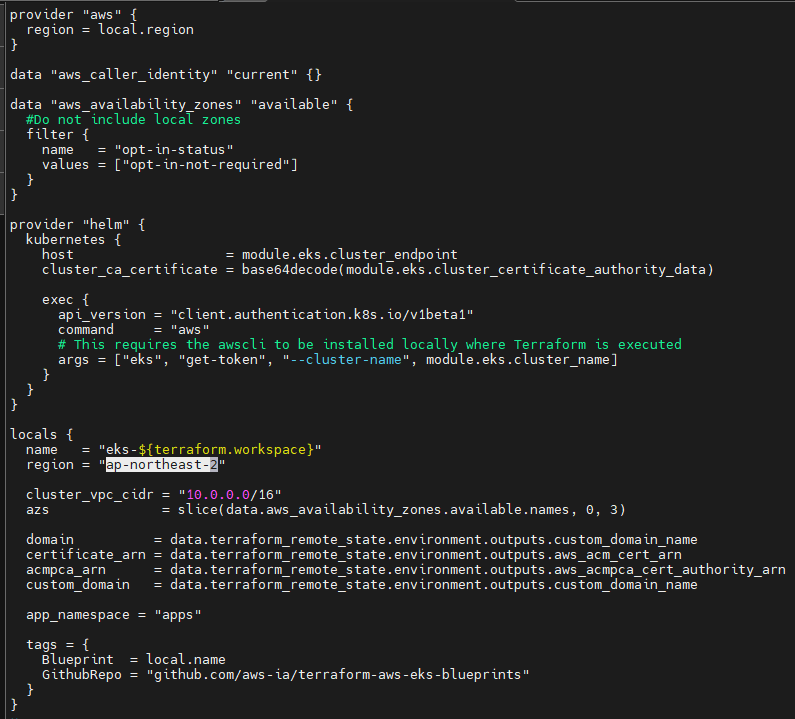 이번 실습은 Amazon EKS Blueprints for Terraform에서 제공하는