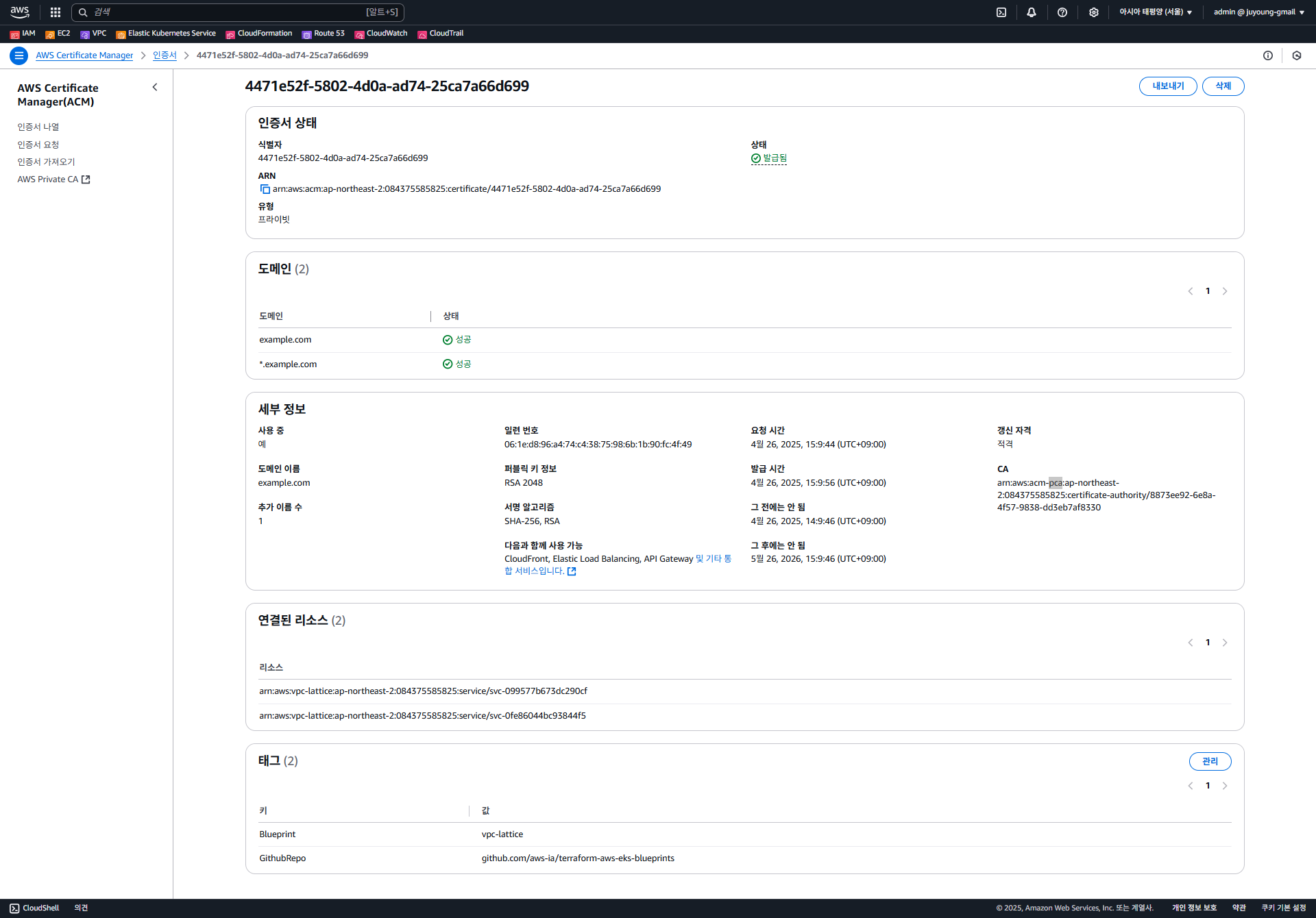 이 작업을 통해 리소스가 한국 리전에 배포됩니다.