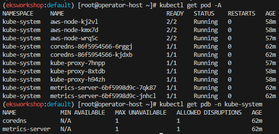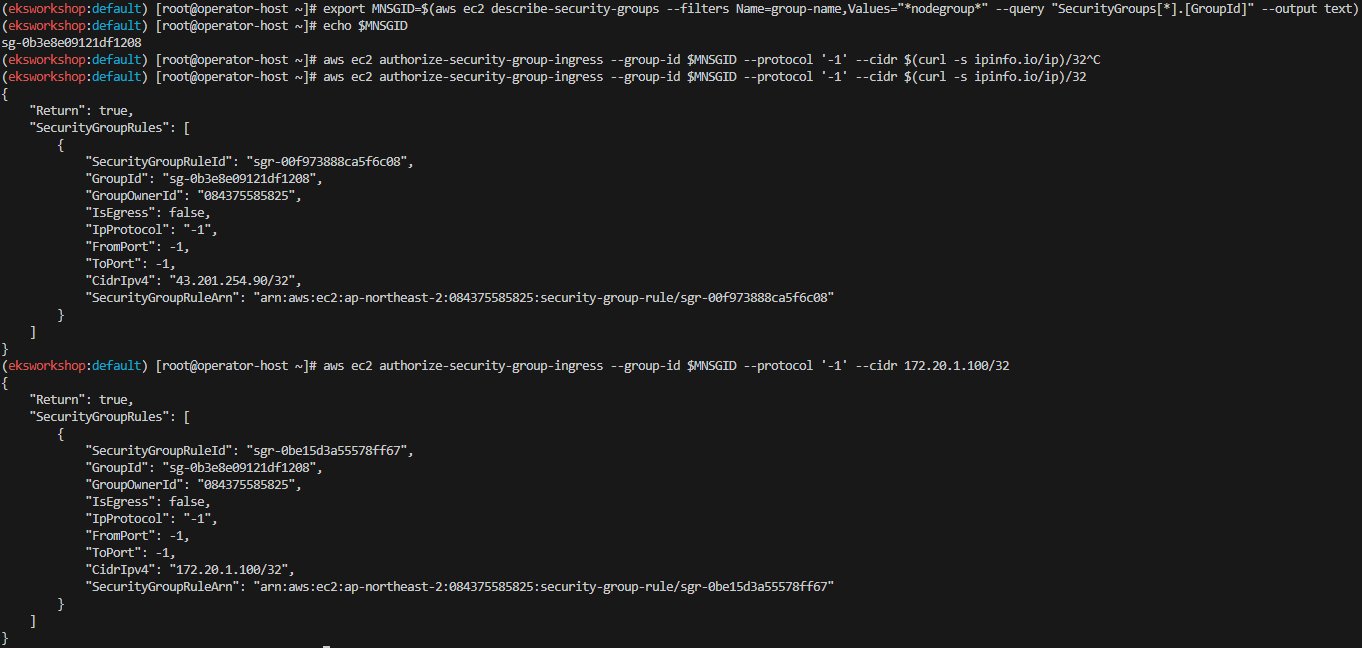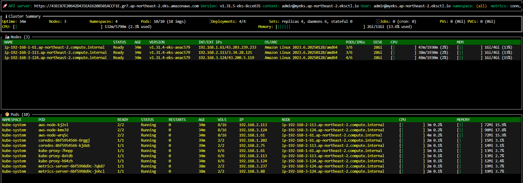 이를 통해 EKS 클러스터의 노드 및 리소스를 운영 서버에서 직접 확인할 수 있습니다.