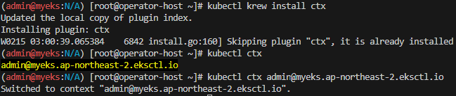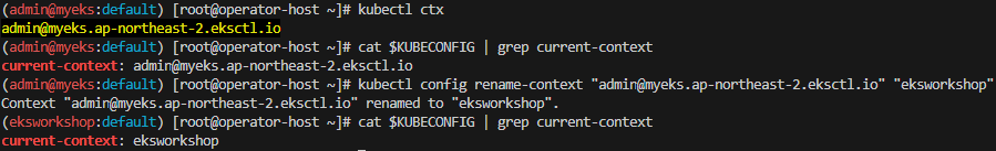 aws eks update-kubeconfig --name myeks --user-alias admin