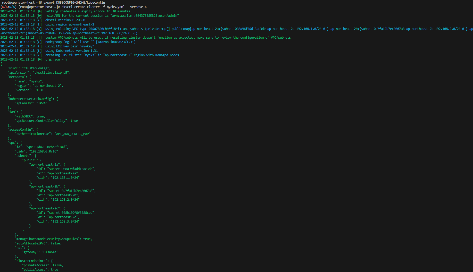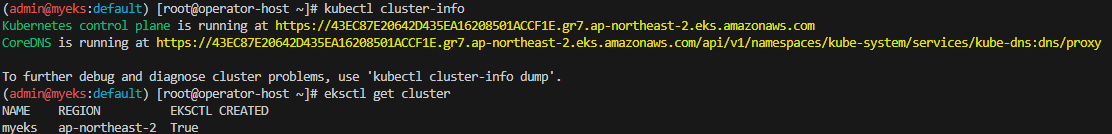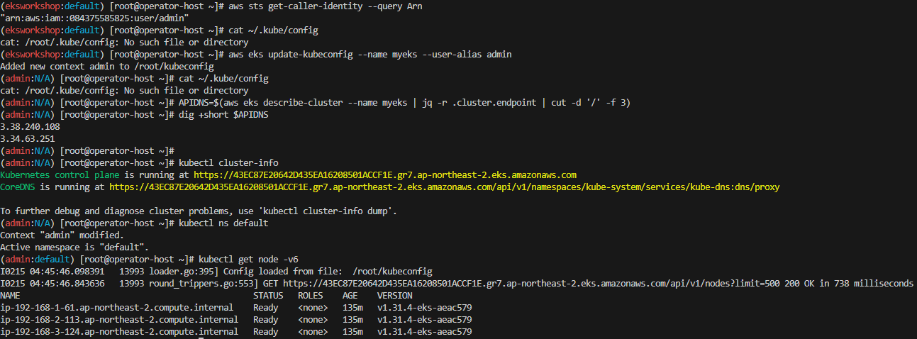 운영 서버에서 kubectl을 사용하려면 EKS 클러스터 정보를 포함한 kubeconfig 파일을 생성해야 합니다.