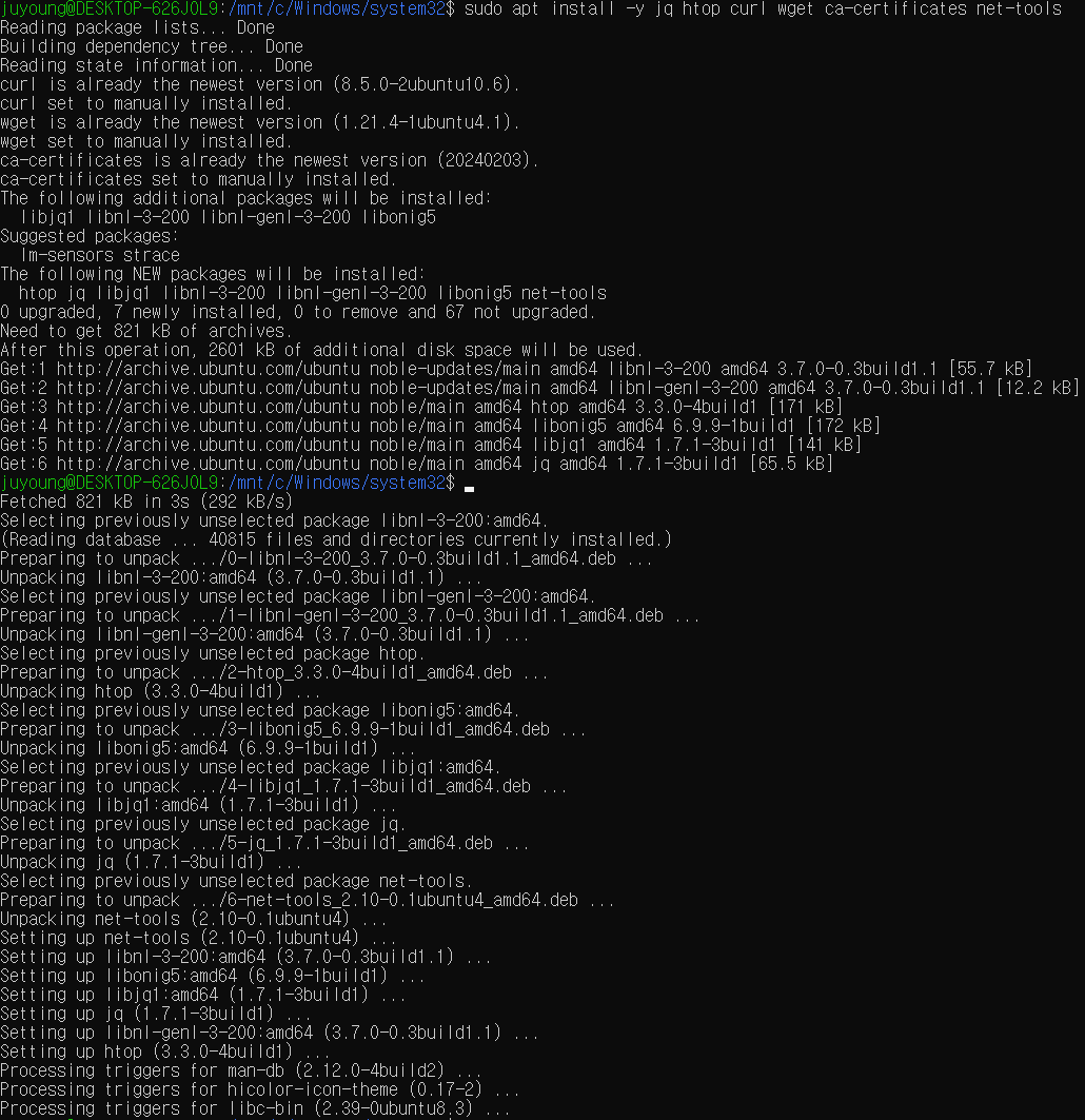sudo apt install -y jq htop curl wget ca-certificates net-tools
