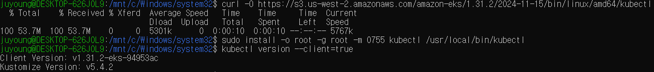 curl -O https://s3.us-west-2.amazonaws.com/amazon-eks/1.31.2/2024-11-15/bin/linux/amd64/kubectl