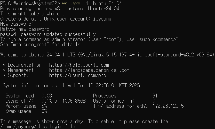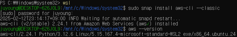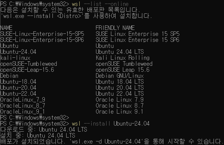 EKS 클러스터를 배포하기 위해 Windows 환경에서 WSL2(Windows Subsystem for Linux 2)를 활용한 Ubuntu 24.04 환경을 구축합니다.
