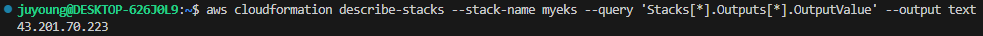 APIDNS=$(aws eks describe-cluster --name myeks | jq -r .cluster.endpoint | cut -d '/' -f 3)