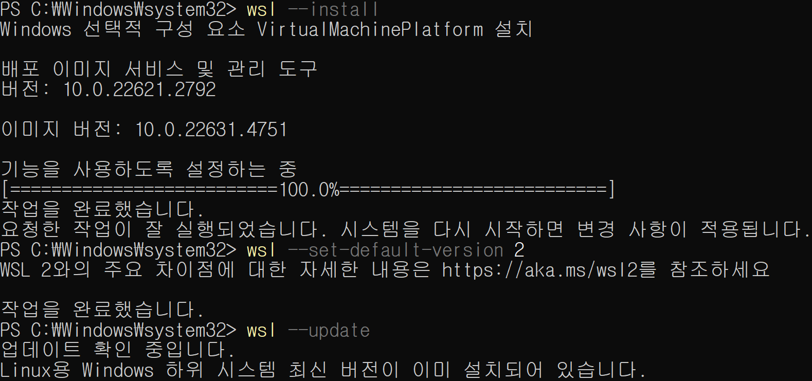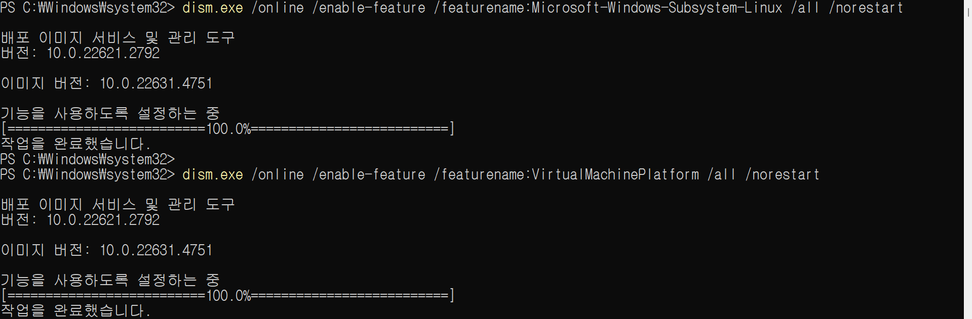 # DISM(배포 이미지 서비스 및 관리) 명령어로 Windows Subsystem for Linux(WSL) 기능 활성화