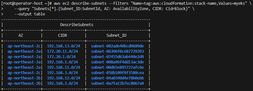 echo "Public Subnets: $PubSubnet1, $PubSubnet2, $PubSubnet3"