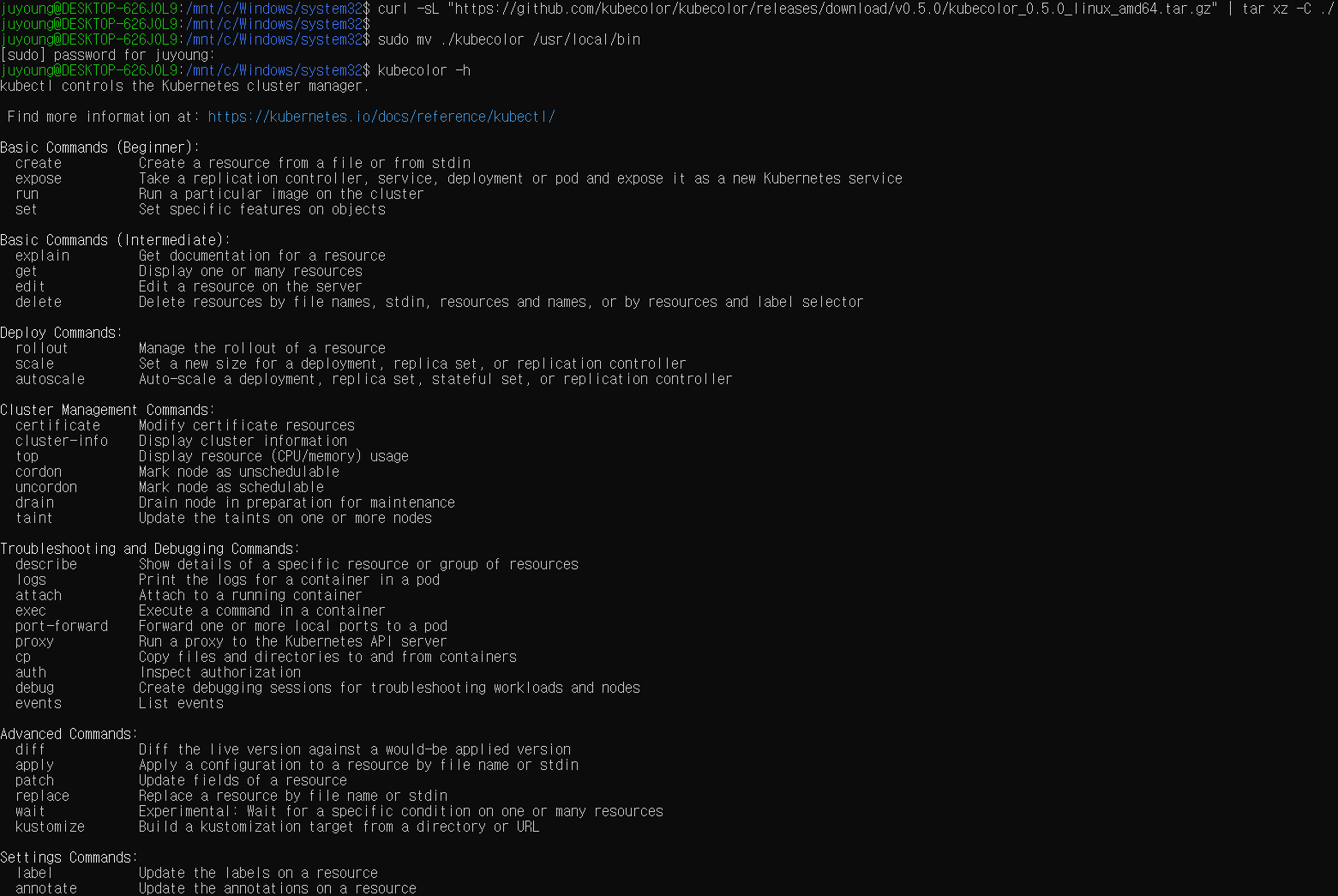 curl -sL "https://github.com/kubecolor/kubecolor/releases/download/v0.5.0/kubecolor_0.5.0_linux_amd64.tar.gz" | tar xz -C ./