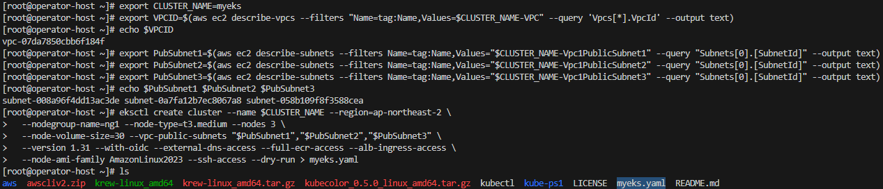 EKS 실습을 진행할 때, 반복적으로 사용되는 변수들을 미리 설정하면 명령어 실행이 훨씬 편리해집니다.