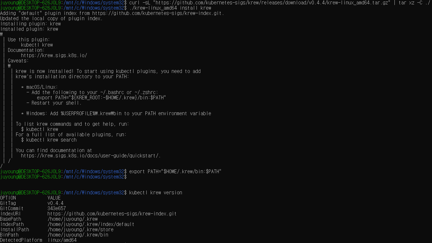 curl -sL "https://github.com/kubernetes-sigs/krew/releases/download/v0.4.4/krew-linux_amd64.tar.gz" | tar xz -C ./