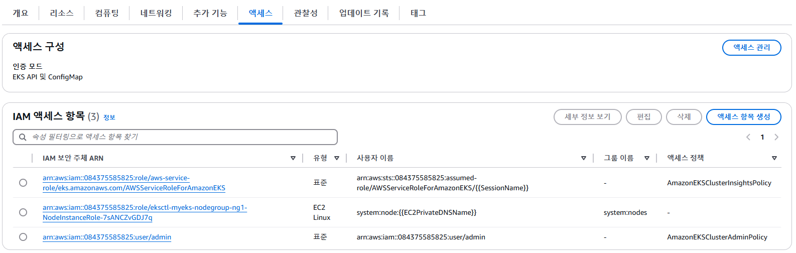 aws eks update-kubeconfig --name myeks --user-alias <출력된 IAM 사용자 이름>