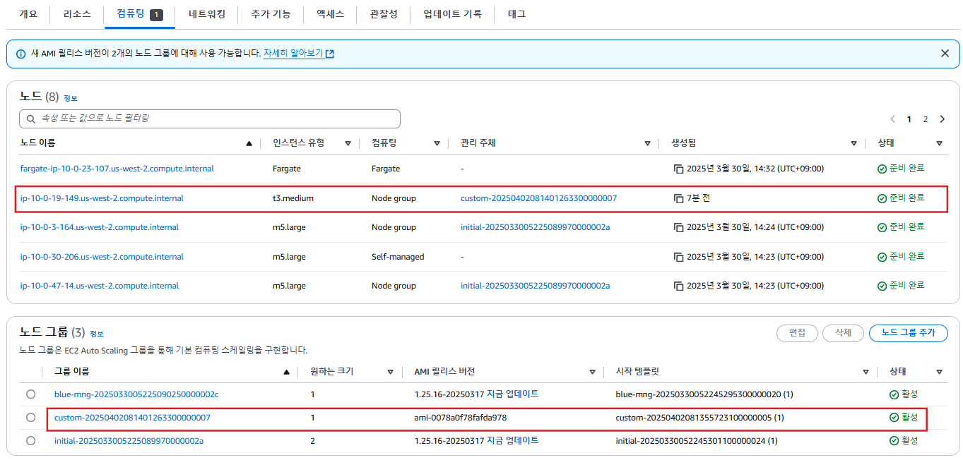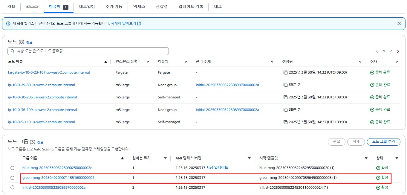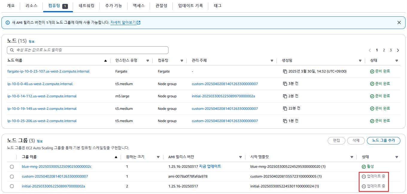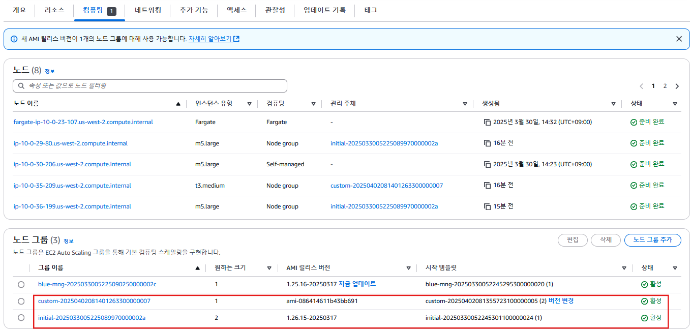 전체 노드가 1.32 버전으로 업그레이드 완료된 이후,