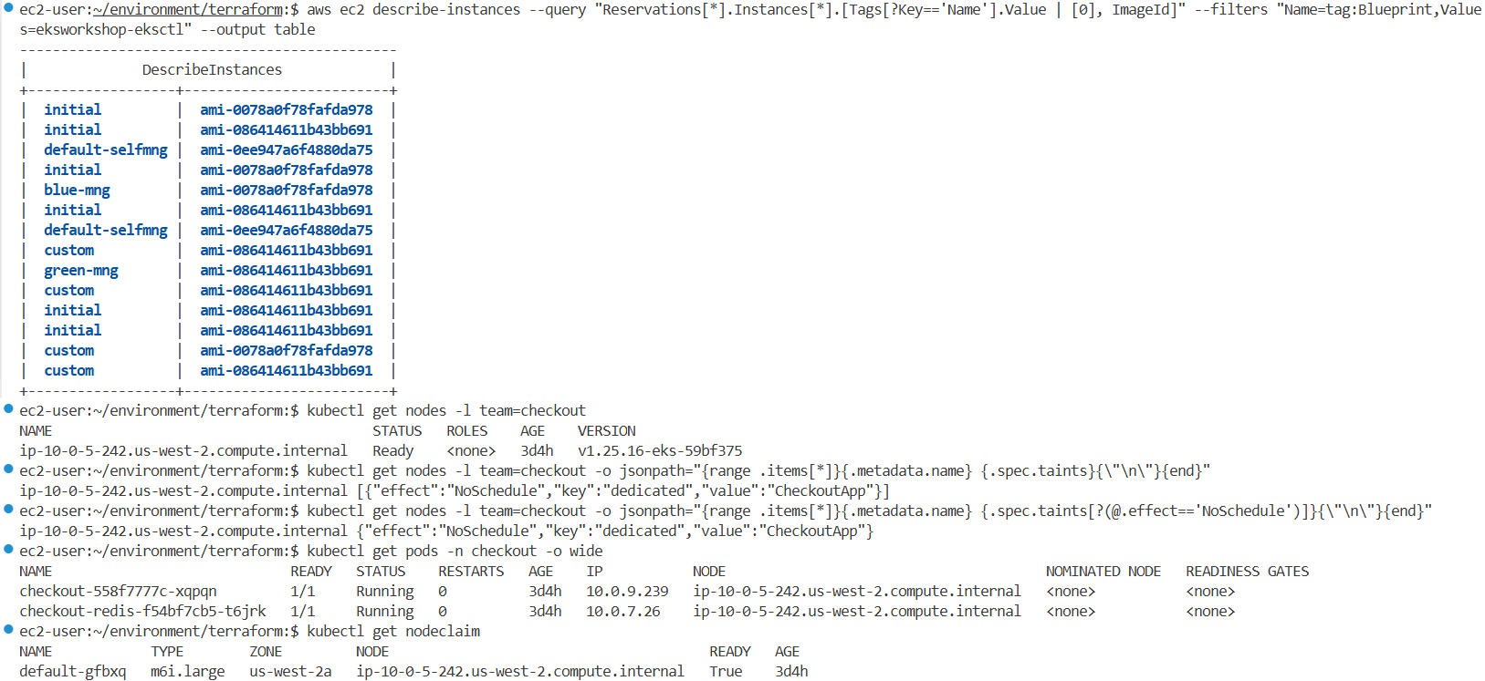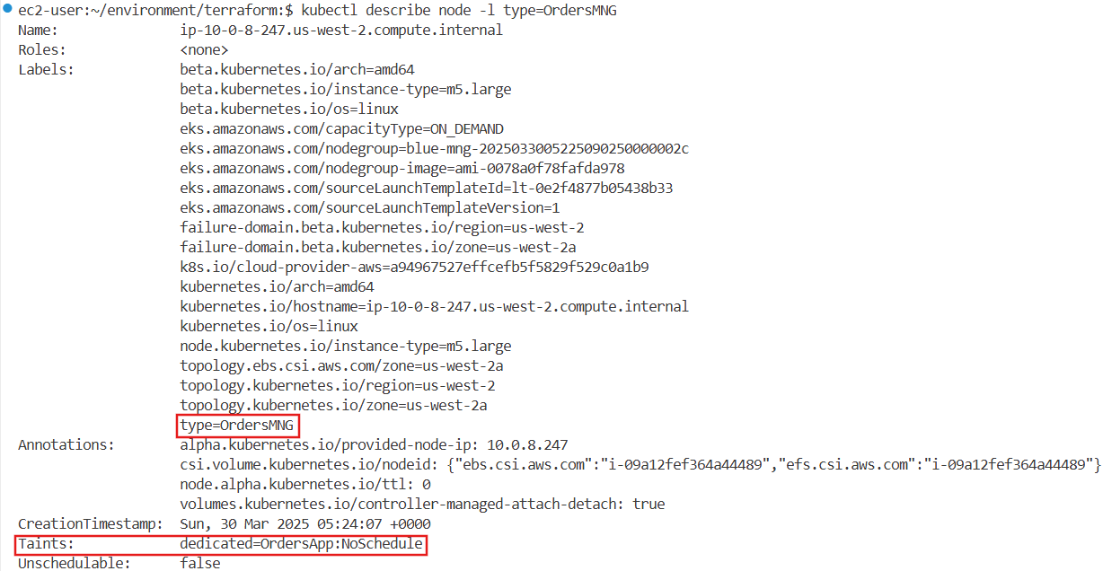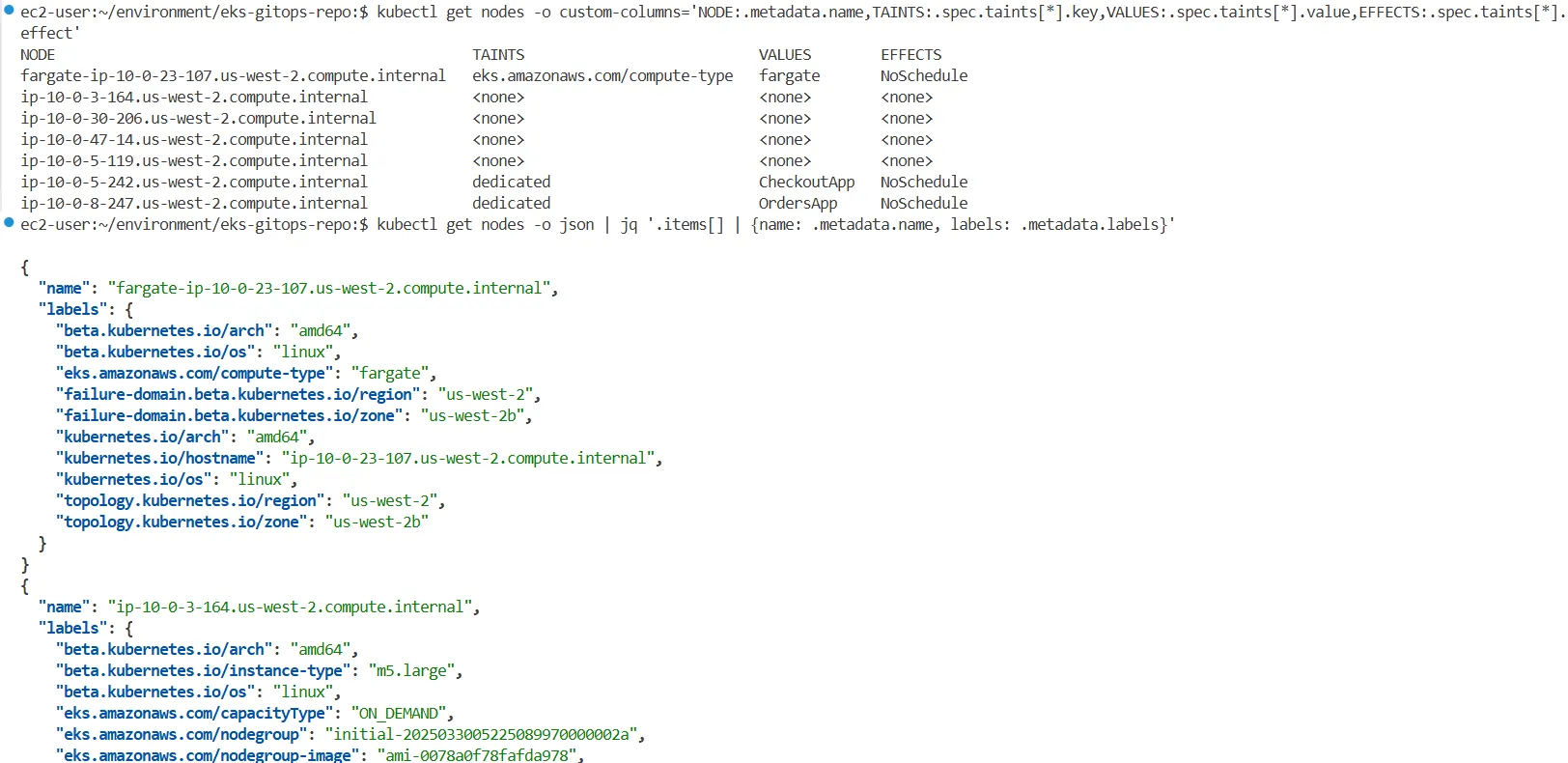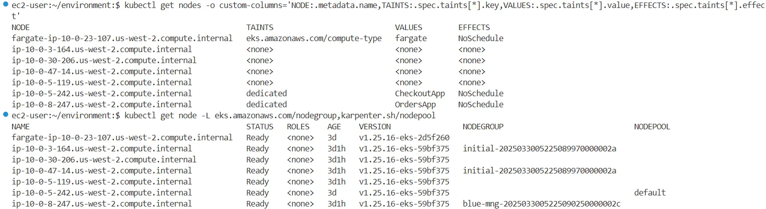 ip-10-0-21-135.us-west-2.compute.internal [{"effect":"NoSchedule","key":"dedicated","value":"CheckoutApp"}]
