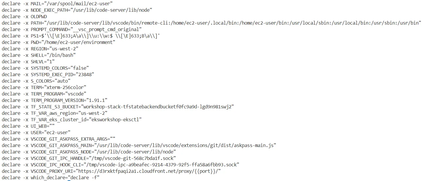 declare -x TF_STATE_S3_BUCKET="workshop-stack-tfstatebackendbucketf0fc9a9d-isuyoohioh8p"