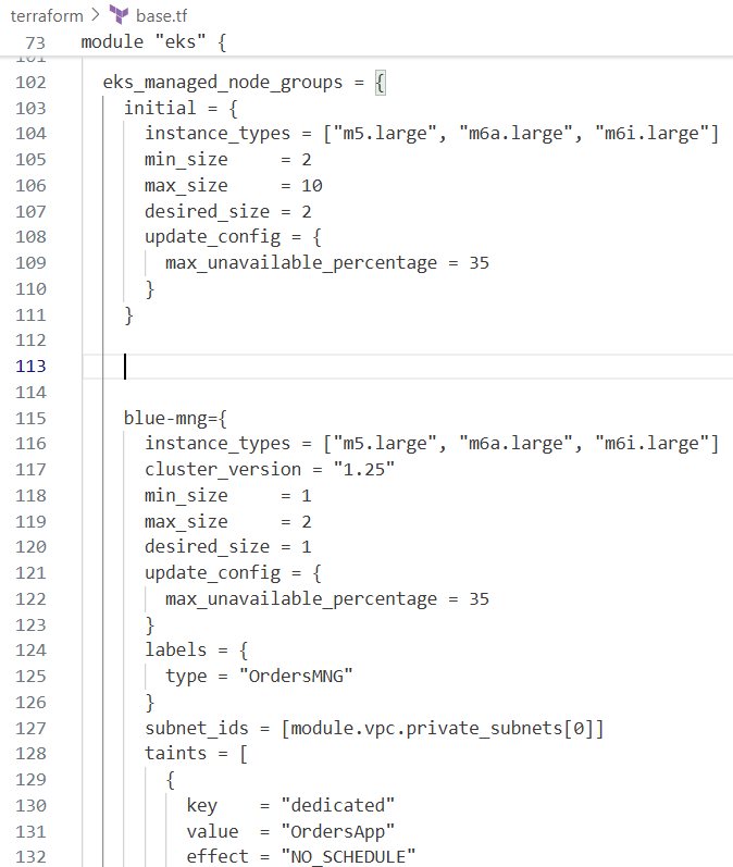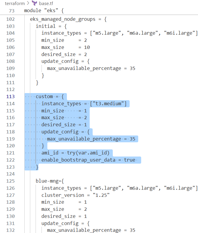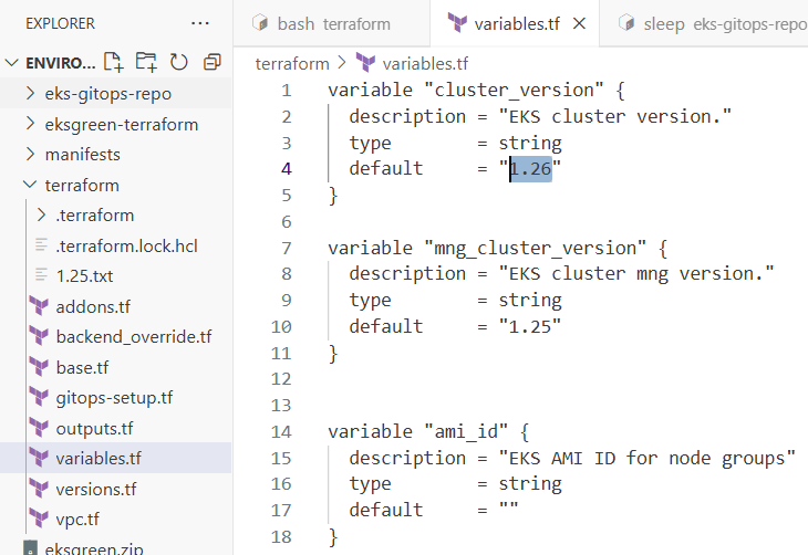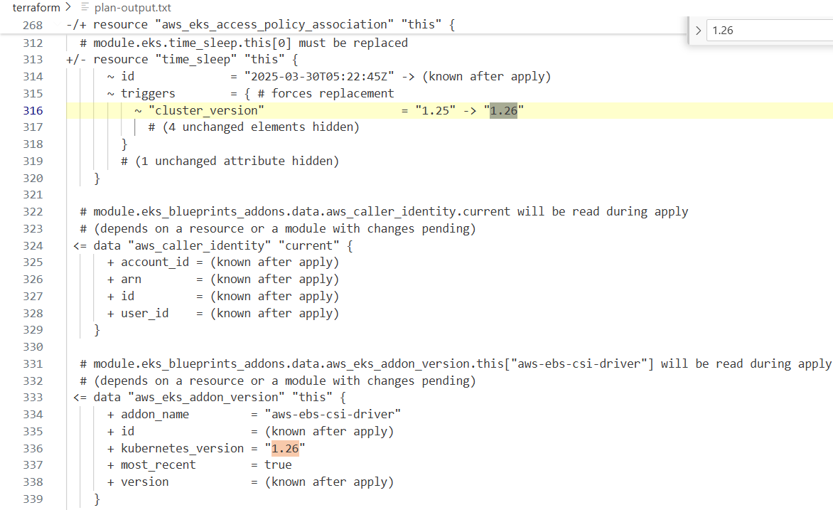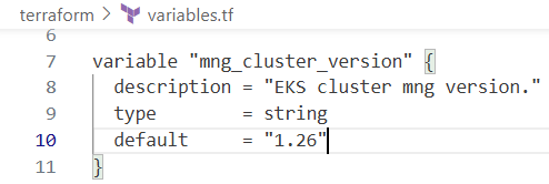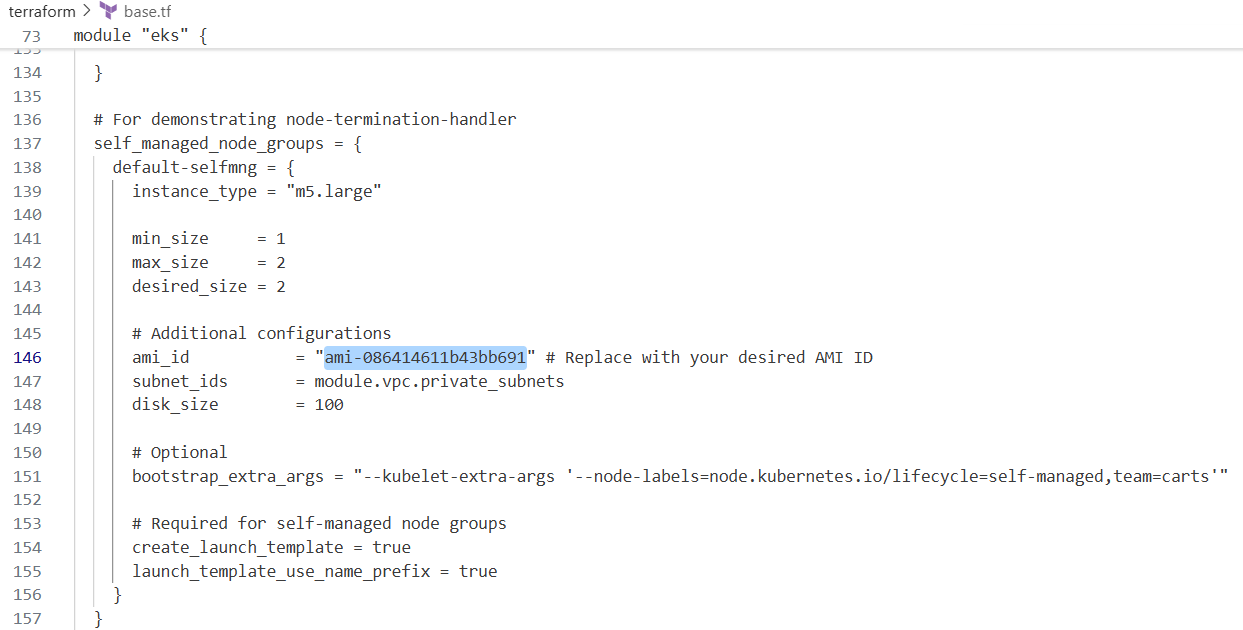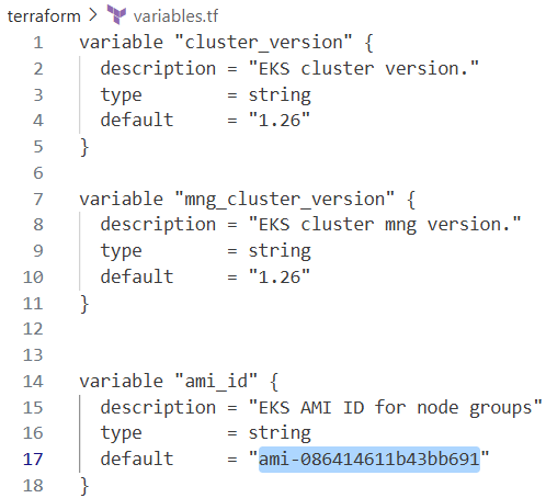 ami_id = "ami-086414611b43bb691" # Replaced the latest AMI ID for EKS 1.26