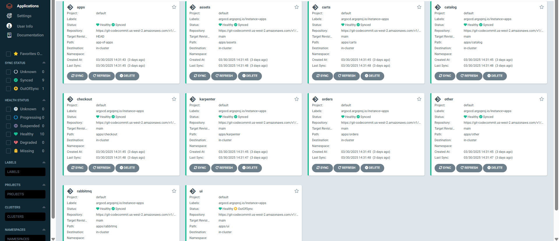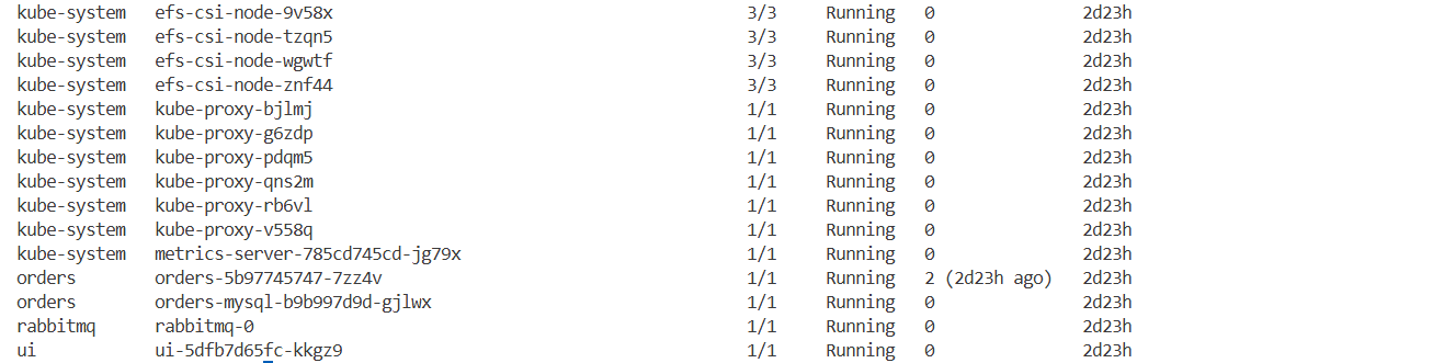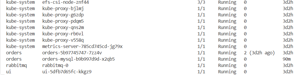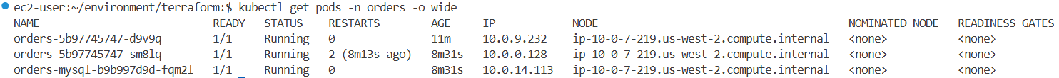 carts-7ddbc698d8-zts9k 1/1 Running 0 30h 10.0.31.72 ip-10-0-26-119.us-west-2.compute.internal <none> <none>