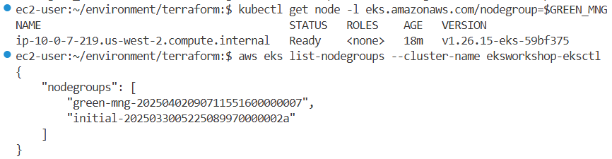 ip-10-0-36-63.us-west-2.compute.internal Ready <none> 22s v1.26.15-eks-59bf375