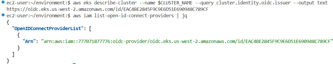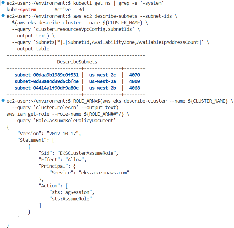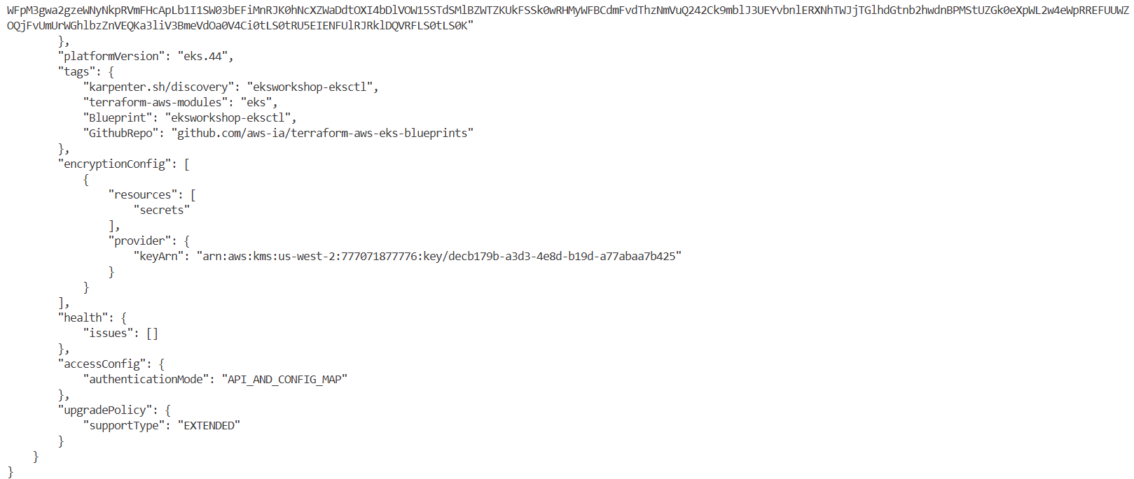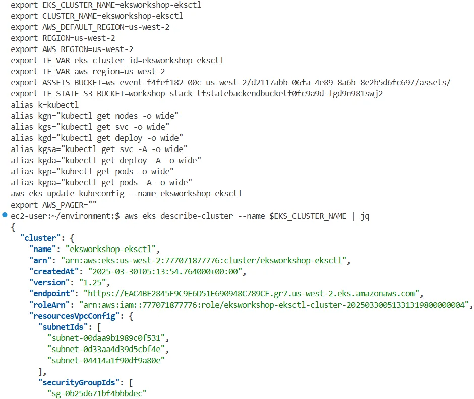 "arn": "arn:aws:eks:us-west-2:271345173787:cluster/eksworkshop-eksctl",