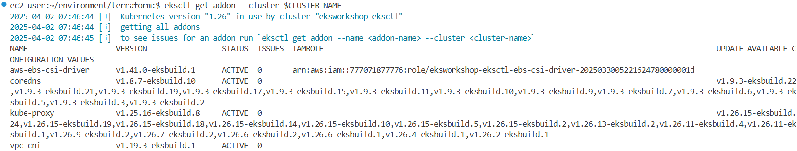 "roleArn": "arn:aws:iam::271345173787:role/eksworkshop-eksctl-cluster-20250325022010584300000004",