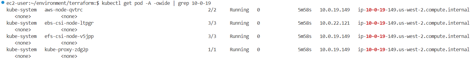 fargate-ip-10-0-21-44.us-west-2.compute.internal Ready <none> 38s v1.26.15-eks-2d5f260 10.0.21.44 <none> Amazon Linux 2 5.10.234-225.910.amzn2.x86_64 containerd://1.7.25