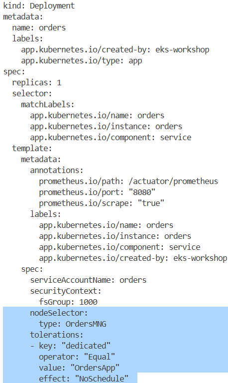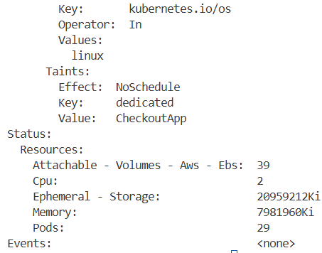 ip-10-0-39-95.us-west-2.compute.internal {"effect":"NoSchedule","key":"dedicated","value":"CheckoutApp"}