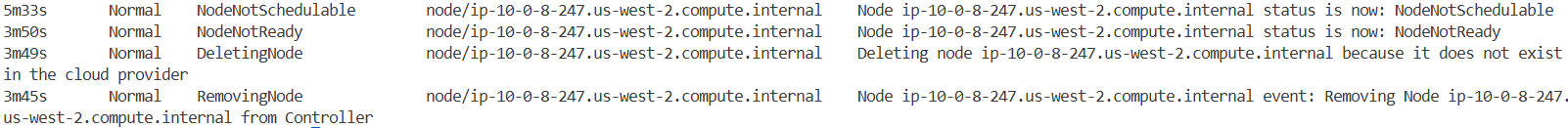 default-xxf6m c5.xlarge us-west-2c ip-10-0-36-63.us-west-2.compute.internal True 2m22s