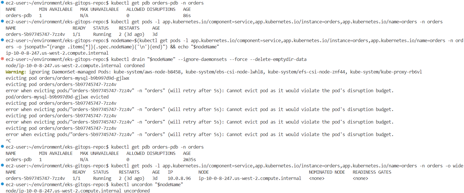 kubectl uncordon <노드> → 노드 복귀 및 상태 확인