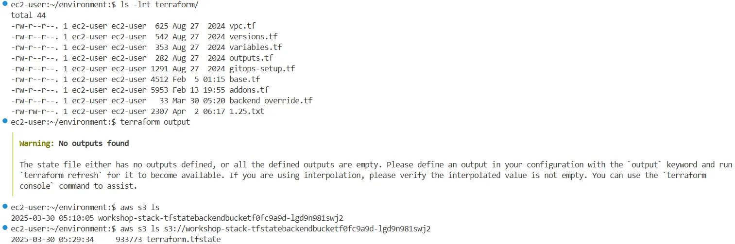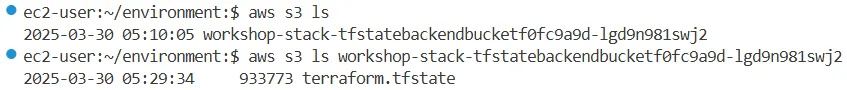 aws s3 ls s3://workshop-stack-tfstatebackendbucketf0fc9a9d-2phddn8usnlw