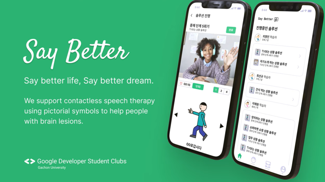 그렇게 세 명의 팀원을 모았고, "Say Better"라는 이름의 비대면 언어치료 솔루션을 두 달 조금 넘는 기간 동안 함께 만들었습니다.