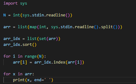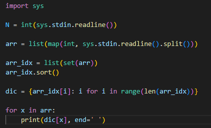 - arr 리스트를 set()에 넣어서 list였던 구조를 set으로 변환하고 다시 list로 변환한다. 이때 중복된 원소는 허용하지 않는 set의 특성으로 인해 arr_idx에는 arr에서 중복된 원소가 존재하지 않게 된다.