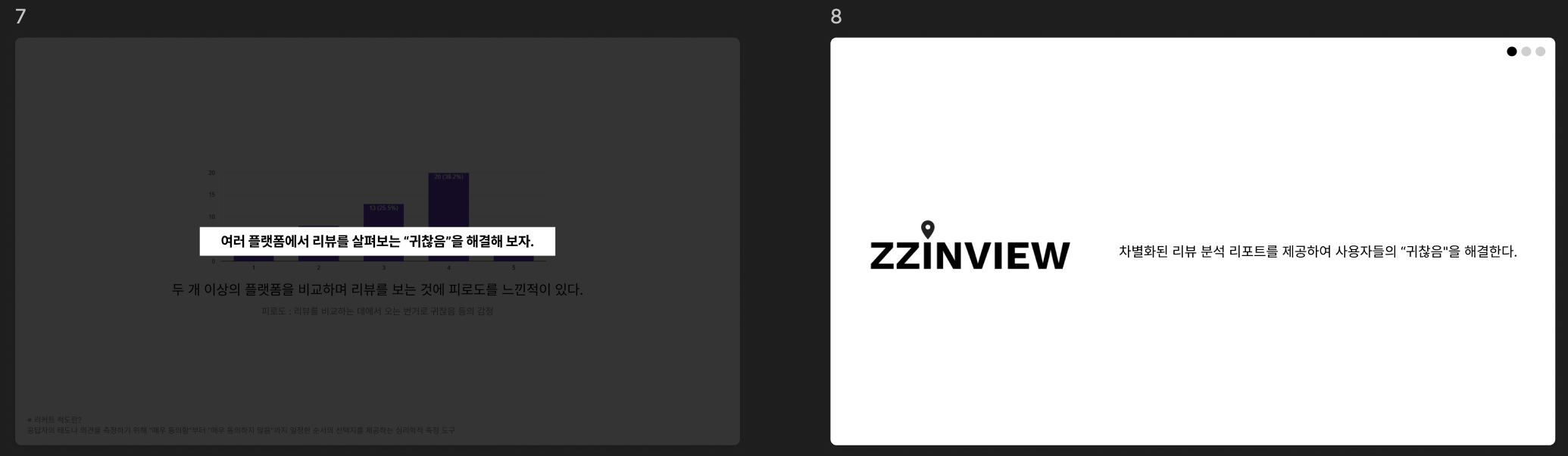 여러번 주제를 변경하면서 유저리서치를 진행했고, 우리가 초점을 두는 것은 '3사 리뷰를 한눈에 보여주어 사용자들의 귀찮음 을 해결하기' 였음