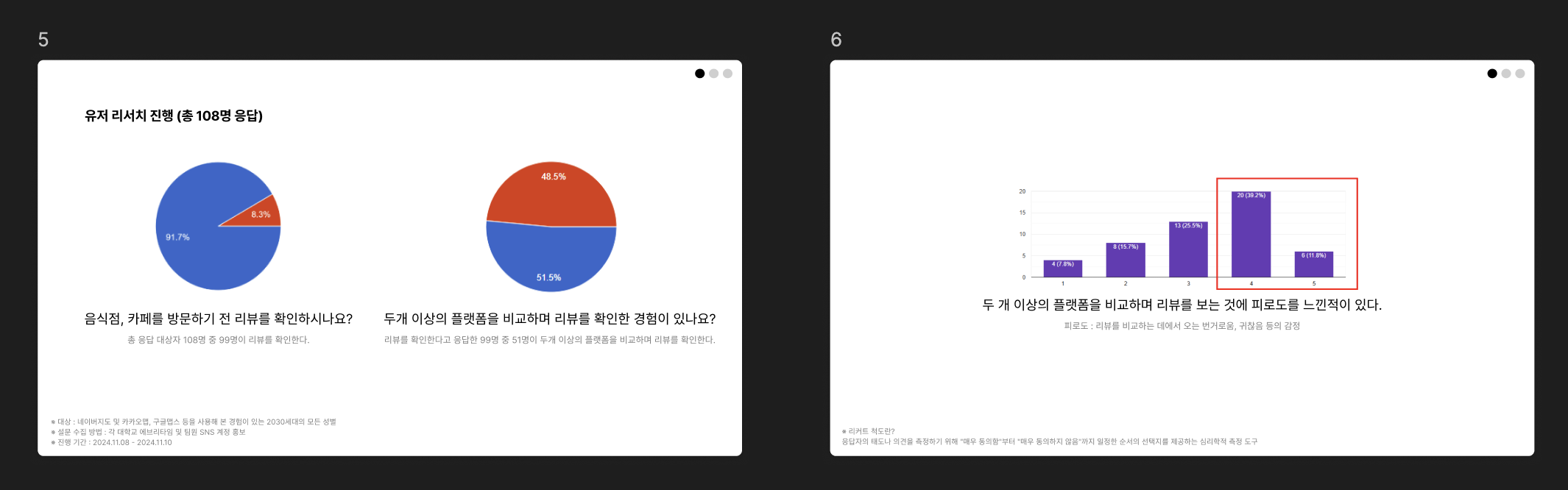 유저리서치를 통해 개선이 필요한 포인트는 바로 '3사 리뷰를 번갈아서 살펴보며 피로도를 느끼는 사용자가 51%이므로 이를 한번에 볼 수 있게 모아주는 것'
