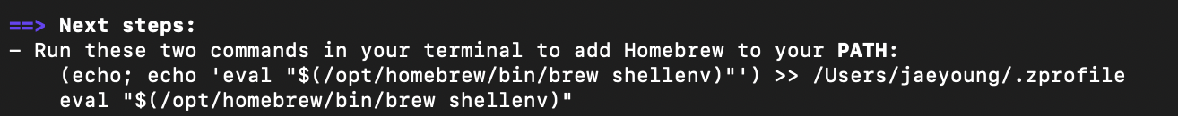 처음 brew를 설치하고 잘읽어보면 next steps가 있다.