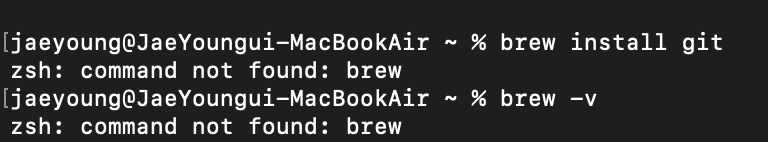 brew의 환경설정이 되어있지않아 brew의 명령어를 찾지 못하는거임.