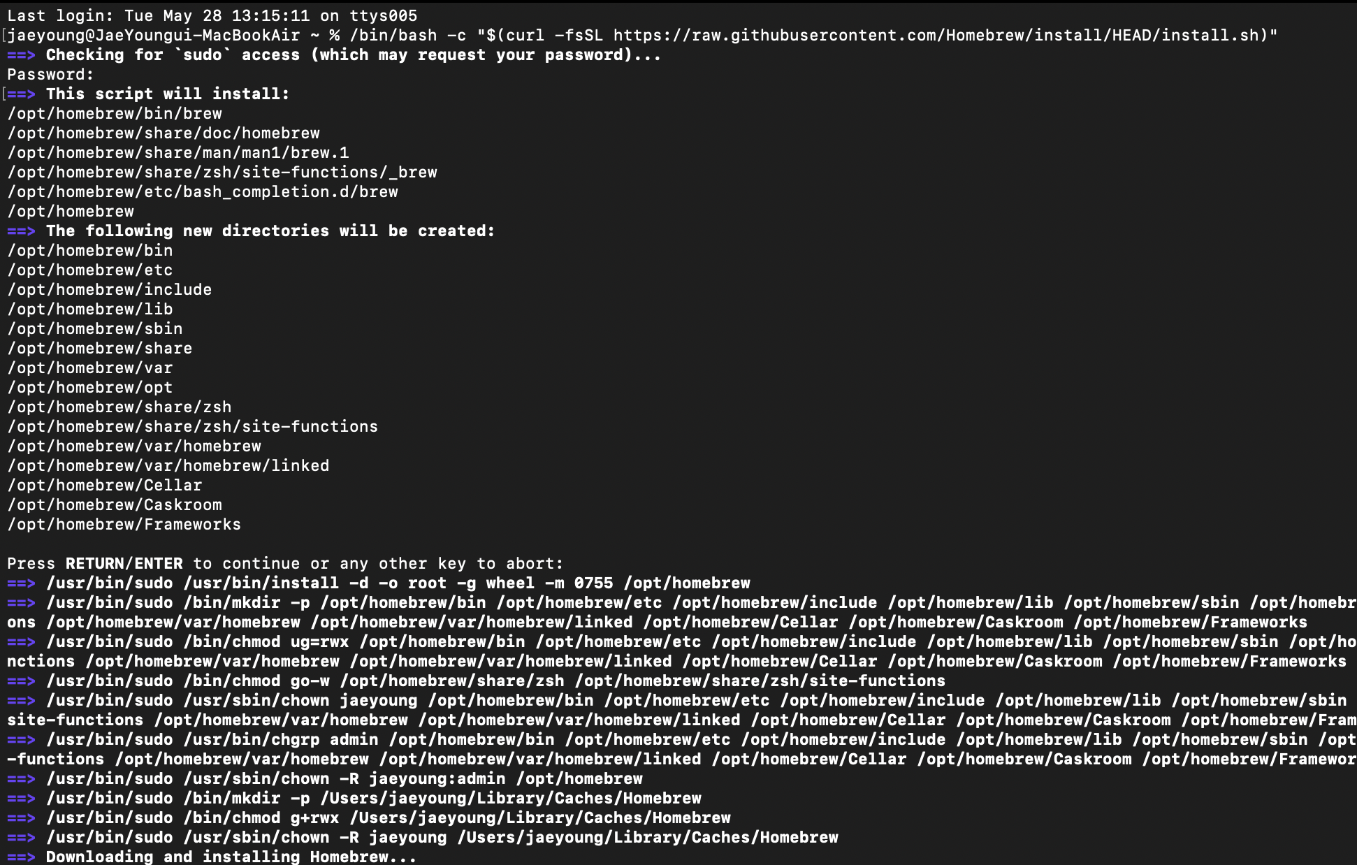 앞써 xcode를 설치하지 않았기 때문에 이번에는 homebrew를 사용할 예정이다