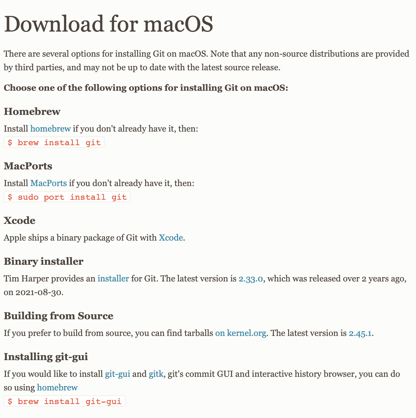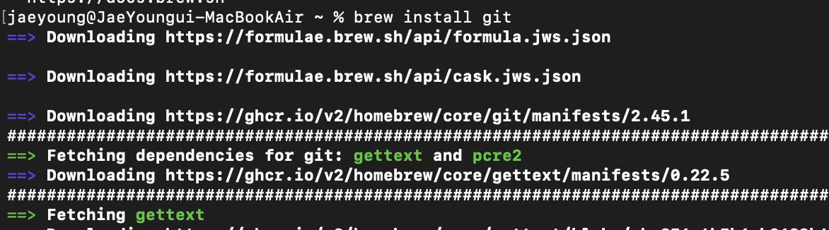 다시 git 으로 돌아가서 brew install git 실행해보자
