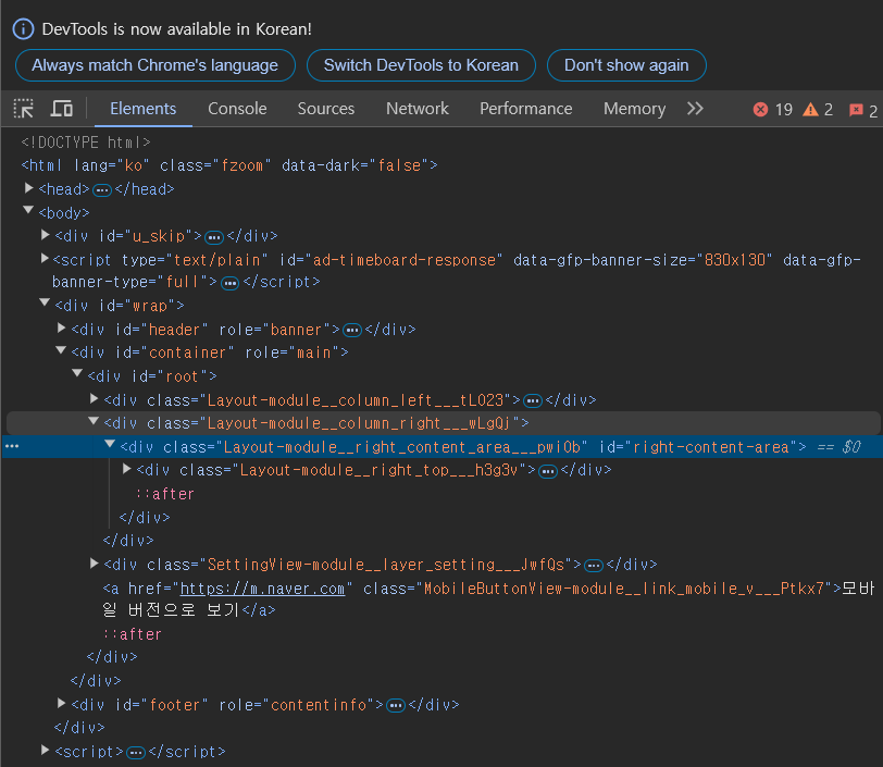 우리가 얻고자 하는 HTML 소스코드도 웹 서버가 보낸 정보에 포함되어 있고, 이는 웹페이지에서 F12 혹은 오른쪽 클릭 후 '페이지 소스 보기' 클릭을 통해 쉽게 확인해볼 수 있다.