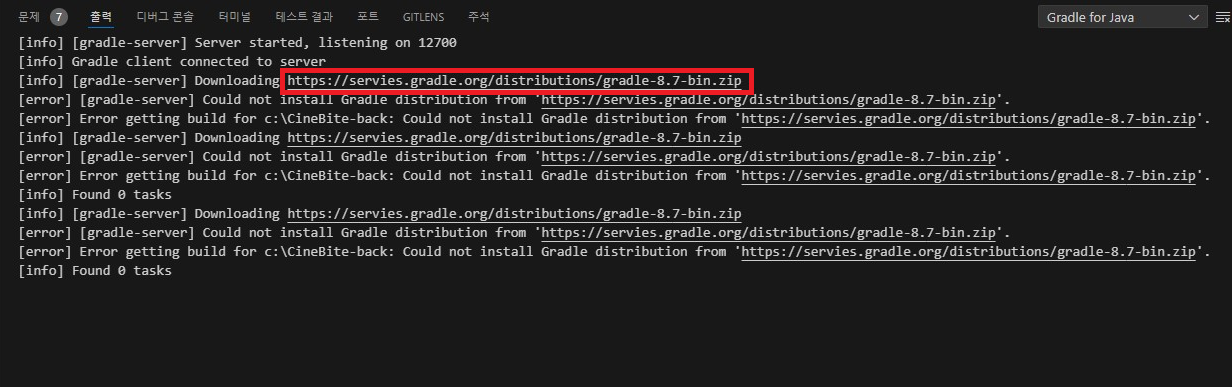 사용하지 않는 gradle-8-x-bin 파일을 지우거나 전부 지우고 VSCode를 재실행한다.(CACHEDIR.TAG는 그래들 실행 시마다 자동으로 생기니 지워도 됨.)