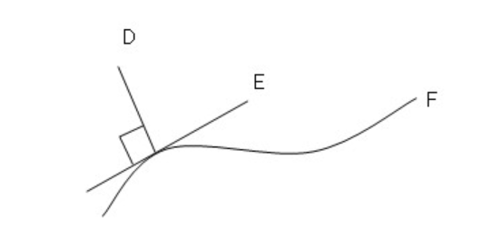 법선 - 임의의 곡선에서 맞닿는 직선의 수직선 (D가 법선)