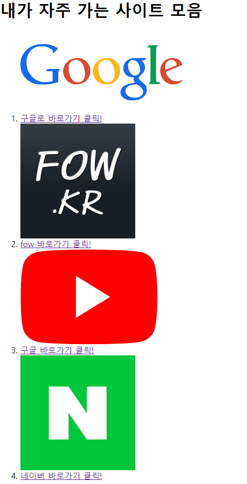 ol은 ordered list의 약자로 숫자에 맞게 리스트를 정렬해준다.