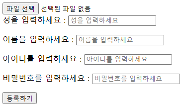 form태그와 lable, input을 이용하여 사용자가 이름과 아이디 비밀번호를 작성하는 틀을 만들어 보았다.
