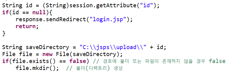 우선 session.getAttribute를 이용하여 id의 값을 가져왔다.