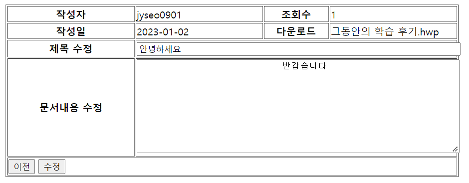 수정은 제목과 내용만 수정할 수 있도록 해주었다.