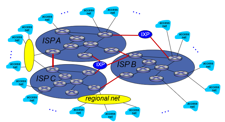 ๊ทธ๋ฆฌ๊ณ Access Networks๋ฅผ ISPs์ ์ฐ๊ฒฐํ๊ธฐ ์ํด Regional Networks๊ฐ ๋ฑ์ฅํ ๊ฒ์ด๋ค.