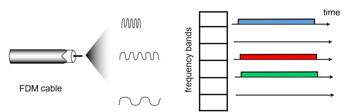μ리: FDMAλ μ±λμ μ£Όνμ μ€ννΈλΌμ μ¬λ¬ μ£Όνμ λμμΌλ‘ λλμ΄ κ° μ€ν μ΄μ μ΄ κ³ μ λ μ£Όνμ λμμ μ¬μ©νλλ‘ νλ€.