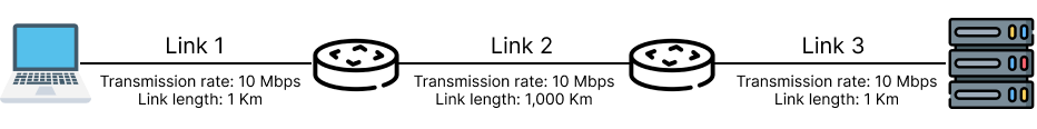 1,000 ๋นํธ ํฌ๊ธฐ์ ํจํท์ 1Mbps ๋งํฌ๋ก ์ ์กํ ๊ฒฝ์ฐ, ์ ์ก ์ง์ฐ์ ์ฝ 1๋ฐ๋ฆฌ์ด๊ฐ ๋๋ค.