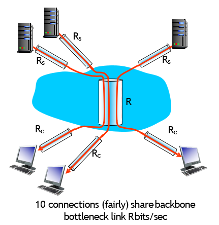 - ์๋ฒ์์ ์ค๊ฐ ๋งํฌ๊น์ง์ ์ ์ก ์๋๋ RSโ=30Mbps์ด๊ณ , ์ค๊ฐ ๋งํฌ์์ ํด๋ผ์ด์ธํธ๊น์ง์ ์ ์ก ์๋๋ RCโ=80Mbps์ด๋ค.