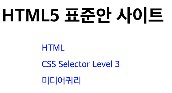 <h1>HTML5 표준안 사이트 </h1>
